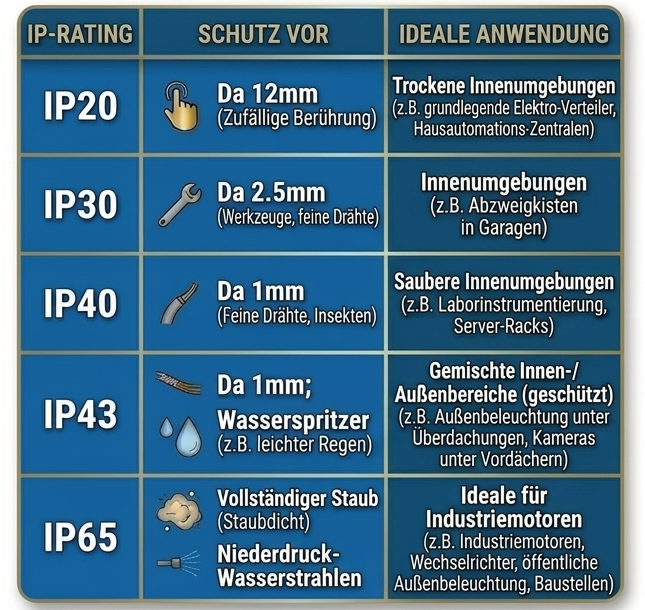 Ein konservativer Ansatz ist empfehlenswert: Wählen Sie eine Schutzart, die leicht über den nominalen Anforderungen liegt, um die Lebensdauer zu erhöhen.