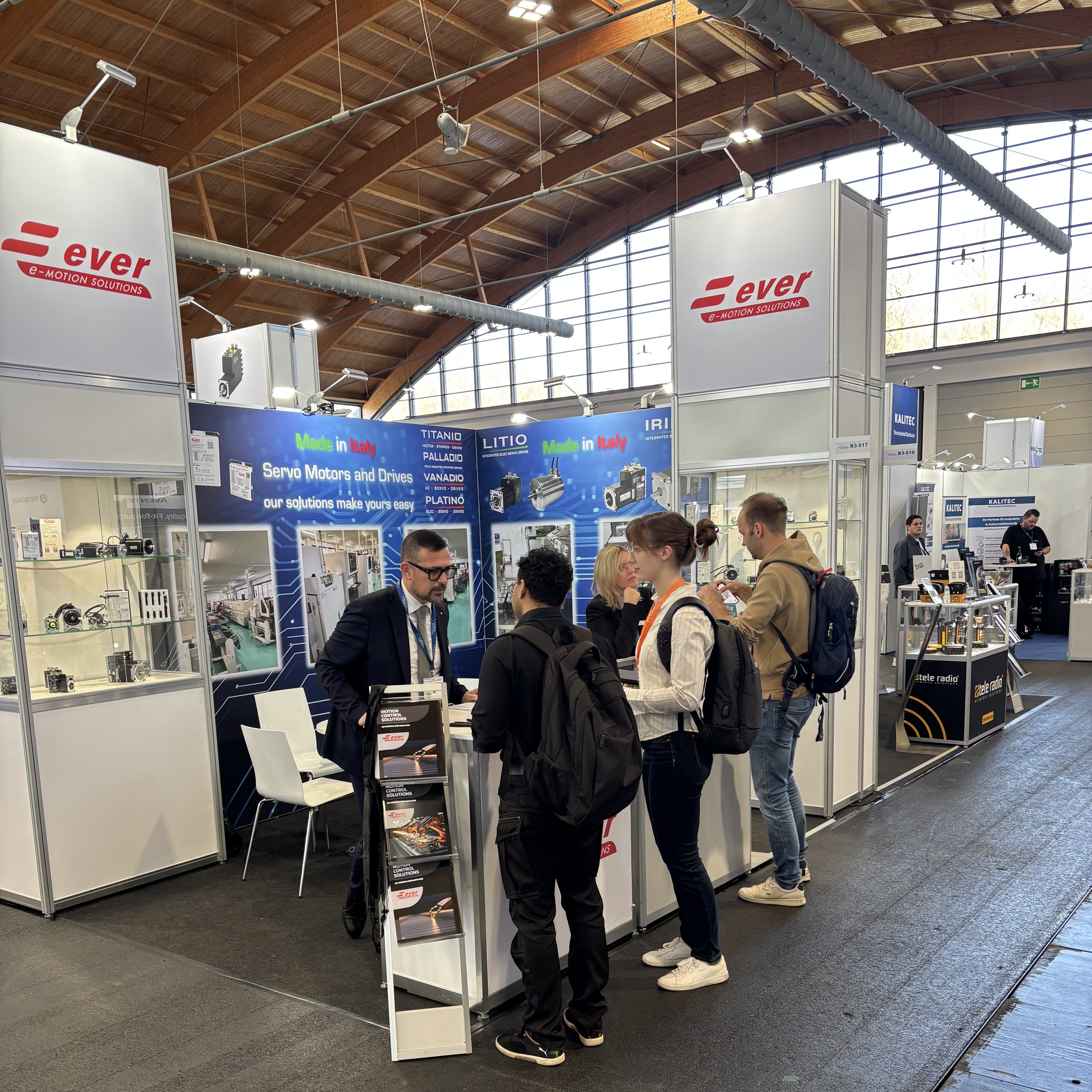 During the exhibition, we showcased the latest innovations developed and manufactured at our headquarters in Lodi: the Litio Line, our new series of BLDC motors with integrated drive designed to deliver compactness, efficiency and advanced axis control; the Palladio Line, focused on stepper drives for applications requiring accuracy and continuous operation; and our SW5D3070 three‑axis stepper drives, engineered for compact design, seamless integration and high performance in demanding industrial environments.